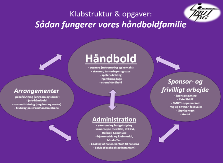 - Planlægning og afvikling (med hjælp fra flere) af klubbens arrangementer – juleafslutning og sæsonafslutning for ungdommen, klubdag på strandhåndboldbanen